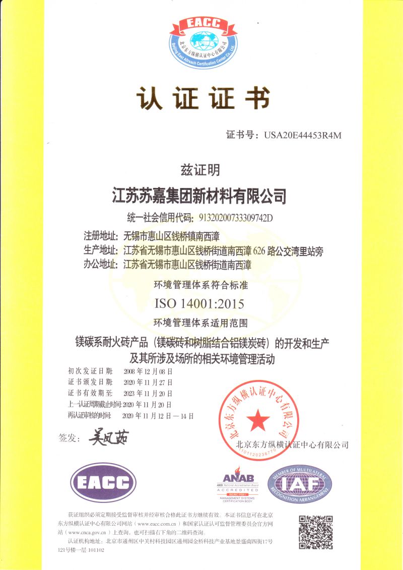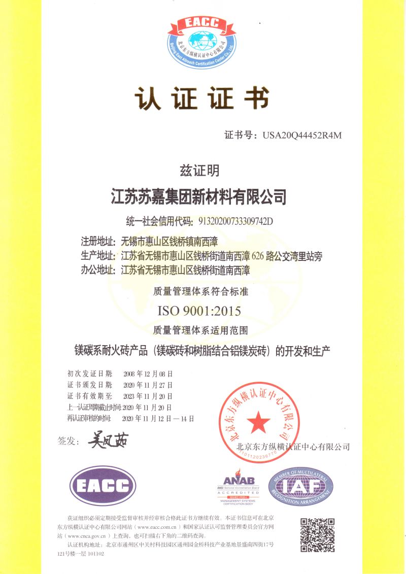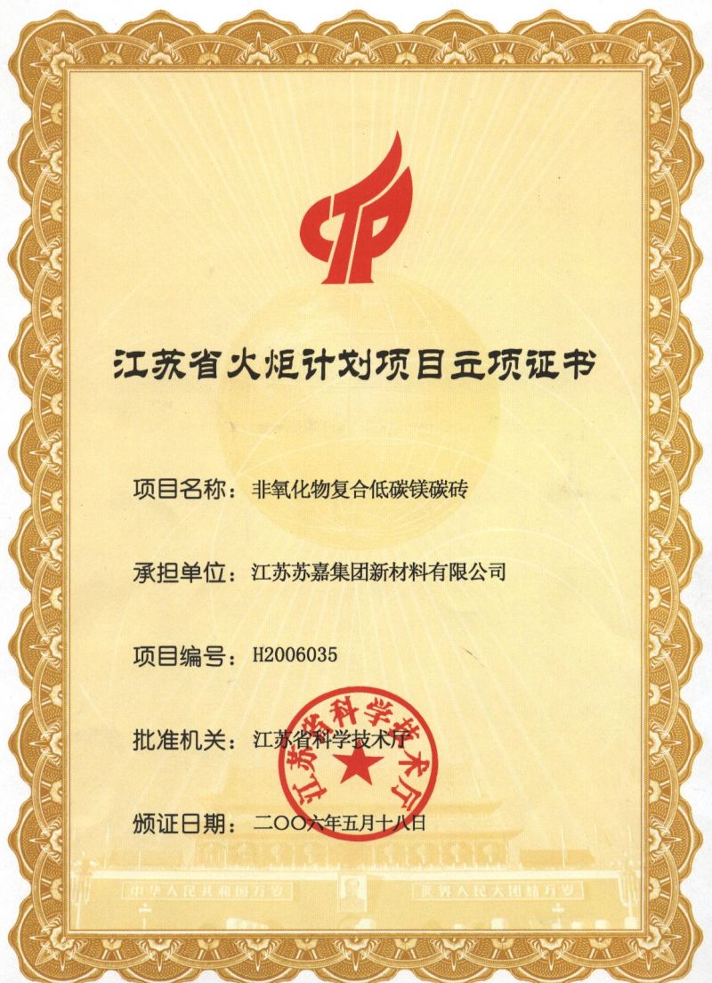 蘇嘉新材料公司是國(guó)家級(jí)高新技術(shù)企業(yè)、中國(guó)耐火材料協(xié)會(huì)副會(huì)長(zhǎng)單位,公司擁有“江蘇省新型復(fù)合耐火材料工程技術(shù)研究中心”,“蘇嘉”商標(biāo)為江蘇省著名商標(biāo)、是江蘇省耐火材料第一品牌。公司多次被國(guó)內(nèi)重點(diǎn)鋼鐵企業(yè)評(píng)為“戰(zhàn)略合作優(yōu)秀供應(yīng)商”, 產(chǎn)品除了供應(yīng)國(guó)內(nèi)多家大型鋼鐵企業(yè)外,還遠(yuǎn)銷美國(guó)、德國(guó)、奧地利、新西蘭、日本及東南亞等國(guó)家和地區(qū)。